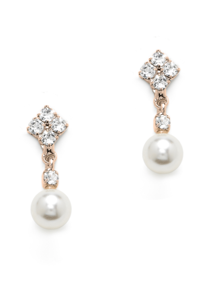 Gli orecchini Romy sono splendidi orecchini da sposa realizzati con perle e delicati cristalli in una montatura in argento 925 con placcatura in oro rosa.