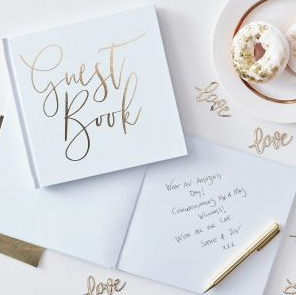Un guestbook è un accessorio indispensabile per il vostro matrimonio. In esso i vostri ospiti potranno lasciare un dolce messaggio o un augurio per voi.