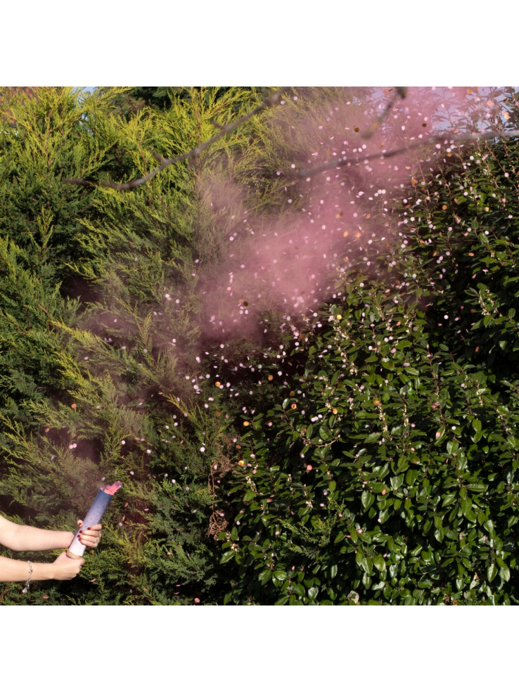 Sulla pistola c'è un'etichetta rosa per identificare i coriandoli all'interno. Rimuova l'etichetta prima dell'arrivo degli ospiti per mantenere segreto il genere!