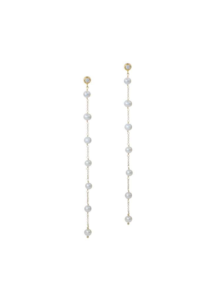 È il VOSTRO giorno, i VOSTRI gioielli - e questi stravaganti orecchini extra-lunghi sono progettati per fare una dichiarazione indimenticabile al vostro matrimonio. Caratterizzati da una borchia di cristallo scintillante e da sette perle d'acqua dolce su ciascun lato, questo pezzo contemporaneo, nonostante il suo design minimalista, continuerà a elevare outfit come un little black dress o un look "jeans e camicetta bianca" per molto tempo dopo il matrimonio.